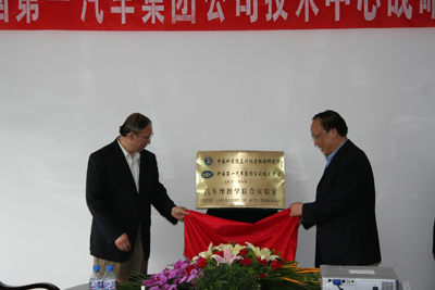 2009年5月11日,中国科学院兰州化学物理研究所与中国第一汽车集团公司技术中心建立的“汽车摩擦学联合实验室”在兰州举行了签字和揭牌仪式。中科院兰州化物所所长刘维民与一汽集团技术中心主任李骏代表双方就“汽车摩擦学联合实验室章程”进行签字,中国工程院院士、中科院兰州化物所学术委员会主任薛群基与李骏主任共同为联合实验室揭牌。