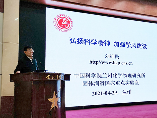 4月27至30日,中国科学院大学2021年第3期研究生指导教师研讨班在兰州举行,中国科学院院士、兰州化物所学术委员会副主任委员、科研诚信建设委员会主任刘维民作了题为“弘扬科学精神、加强学风建设”的专题报告。兰州分院系统单位100余位研究生导师参加了培训班。
