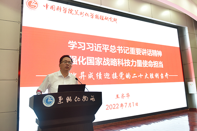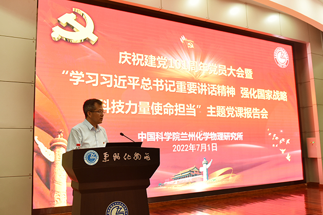 7月1日上午,中国科学院兰州化学物理研究所召开庆祝建党101周年党员大会暨“学习习近平总书记重要讲话精神 强化国家战略科技力量使命担当”主题党课报告会。所领导、党委委员、纪委委员和全所在职职工党员、研究生党员、部分离退休党员以及民主党派人士代表参加了会议。党委副书记、纪委书记张长春主持会议。