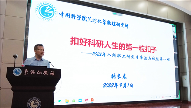 9月1日,中国科学院兰州化学物理研究所为2022年新入所人员讲授“廉洁与诚信第一课”,2022年新入所职工和研究生160余人参加了会议。