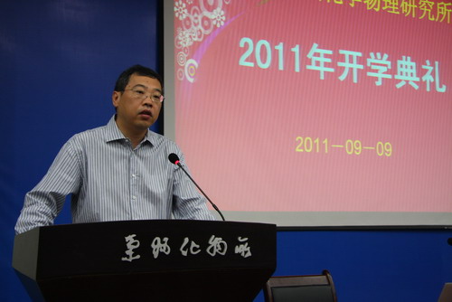 9月9日,兰化所2011年研究生开学典礼在理化楼一楼学术厅隆重举行,全体研究生满怀激动的心情参加了开学典礼。所学位评定委员会主席、学术委员会主任薛群基院士、所长刘维民研究员、党委书记兼副所长赵秀茹、副所长夏春谷研究员、副所长王齐华研究员、所长助理师彦平研究员出席了开学典礼。典礼由副所长夏春谷研究员主持。