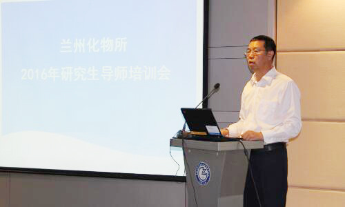 2016年度中国科学院朱李月华优秀教师奖获得者、兰州化物所环境材料与生态化学研究发展中心主任王爱勤研究员应邀为导师们做了题为《新形势下我们的责任》的报告。报告讲述了中国科技及科研人员面临的新形势和新要求,提出作为中国科学院的一员,要在“十三五”规划和“率先行动”计划中担负起应有的责任,同时勉励导师们“科技创新需要更大的勇气和责任心”、“勤奋是基础,志向是灵魂”。他还和大家分享了自己的科研工作和研究生培养心得,希望导师们不仅要向研究生分享知识,更应传授理念,培养富有智慧的创新创业人才。