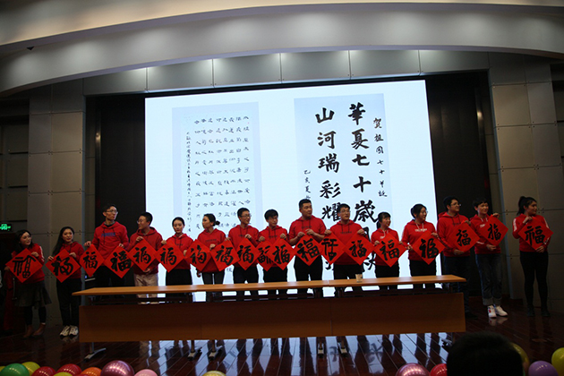 在大合唱《我和我的祖国》的歌声中,联欢会落下帷幕,在新的一年里,兰州化物所全体职工、研究生和离退休职工将更加紧密地团结在以习近平同志为核心的党中央周围,振奋精神、团结协作,踏实工作,以昂扬的斗志和饱满的精神不断开创研究所科研创新工作新局面,为建设创新型国家和世界科技强做出新的更大的贡献。