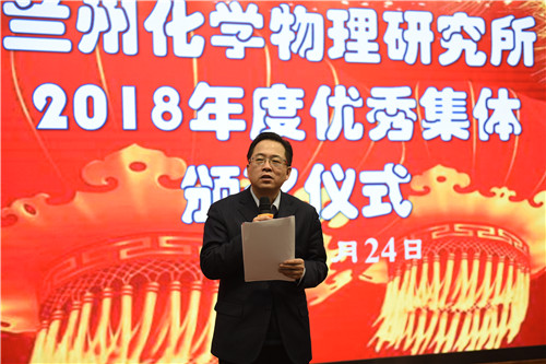 联欢会前,举行了研究所2018年度“优秀集体”和“第十届兰州化物所青年创新奖”颁奖仪式。研究所所长、党委书记王齐华宣读了获奖名单,所领导共同为获奖集体和个人颁发了奖牌。王齐华在新年致辞中代表研究所党政领导班子向全所干部职工、研究生同学、离退休老同志致以新春的问候,回顾了过去一年研究所各项事业的发展与变化。他希望全所干部职工和研究生在新的一年里不忘初心,牢记使命,围绕研究所“一三五”规划和中科院“率先行动”计划升级版,在各自的岗位上,开拓进取、争先创优,为研究所各项事业的进步,为地方经济社会的发展,为建设世界科技强国做更多的贡献。