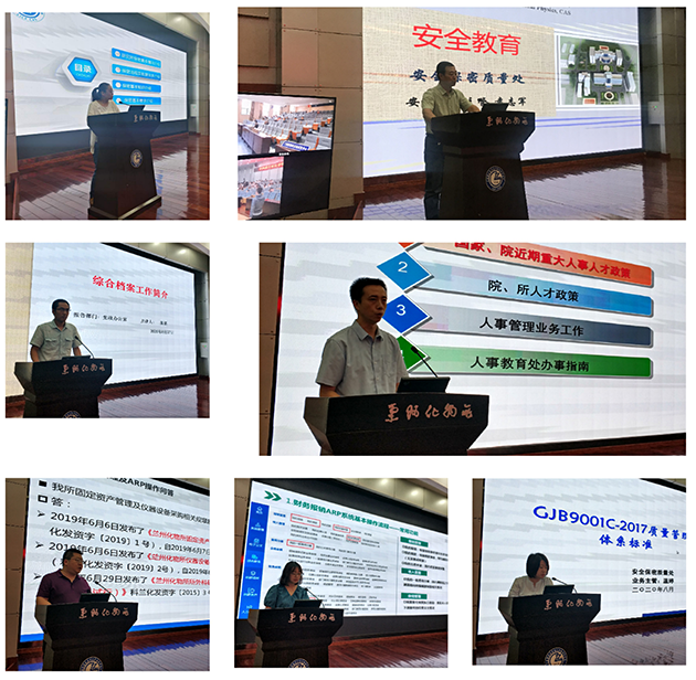 此次教育培训分为业务培训和专题培训,业务培训主要由党政办公室、科研与规划处、人事教育处、财务处、条件保障处等分别就党建、创新文化建设及普法教育,文献资源及文献情报分析,人事人才管理,财务制度与报销管理流程,固定资产管理与政府采购培训,公共设施使用与行为规范进行了介绍。专题培训主要包括实验室安全教育、网络安全与应用、保密教育、质量管理培训、馆藏文献与数据库应用的相关培训,并进行了卷面考试。