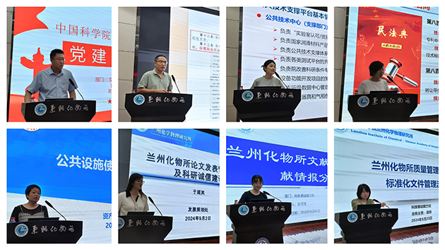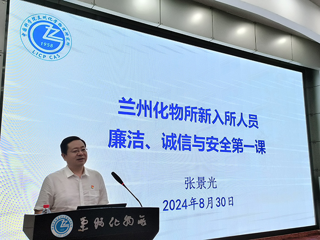 所长周峰作了题为“兰州化物所所情及科技创新工作”的报告,介绍了研究所历史沿革与主要贡献、科研平台与人才队伍、承担任务与成果产出、科技合作与成果转化、“十四五”规划与目标等情况。纪委书记张景光作了题为“廉洁、诚信与安全第一课”的报告,组织学习了党的二十届三中全会精神和习近平总书记关于全面从严治党、自我革命、科技创新的重要论述,传达了中国科学院党组2024年夏季扩大会议和院科研诚信会议的有关工作部署,通报了违纪违规和科研失信行为的典型案例。
