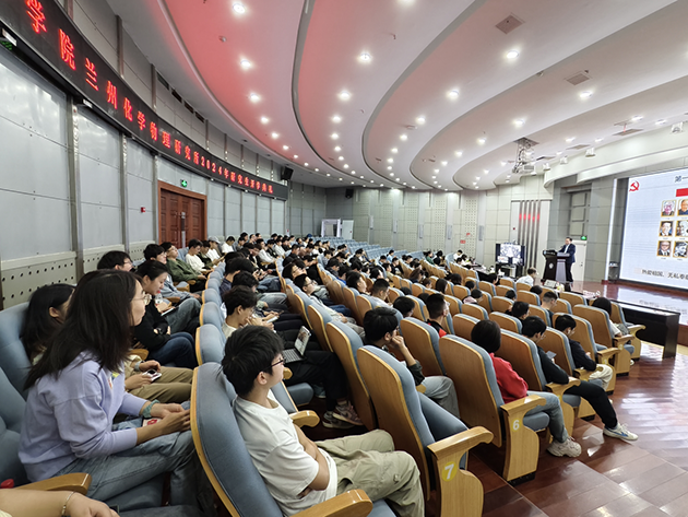 兰州化物所党委书记王齐华作了题为《感悟祖国科技发展历程, 凝聚科技事业奋进力量,努力成为建设科技强国的栋梁之材》的专题党课,全面回顾了党领导祖国科技事业发展取得的辉煌成就,回顾了研究所60多年的发展历史、涌现出的先进和典型人物,对研究生提出了殷切希望和要求。希望全体研究生深刻领会创新在我国现代化建设全局中的核心地位,深入了解研究所光辉历程,以前辈科学家为榜样接续奋斗,坚定理想信念、树牢学习理念、忠诚担当,多做科技贡献,将爱国之情、报国之志与国家的科技创新事业相结合,保持执着追求和永不放弃的干劲,承担起“一代更比一代强”的青春责任。