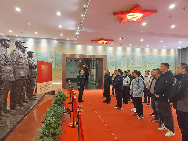 30日下午,导师们到会宁县红军会师旧址开展了爱国主义教育。在庄严肃穆的红军会师纪念塔下,向革命烈士敬献花篮、鞠躬致敬,重温了入党誓词。在讲解员带领下瞻仰了红军长征胜利纪念馆,切身感受长征中革命先烈舍身忘我、艰苦奋斗的英勇事迹,缅怀革命先辈的丰功伟绩,汲取创新奋进、刻苦攻关的精神力量。