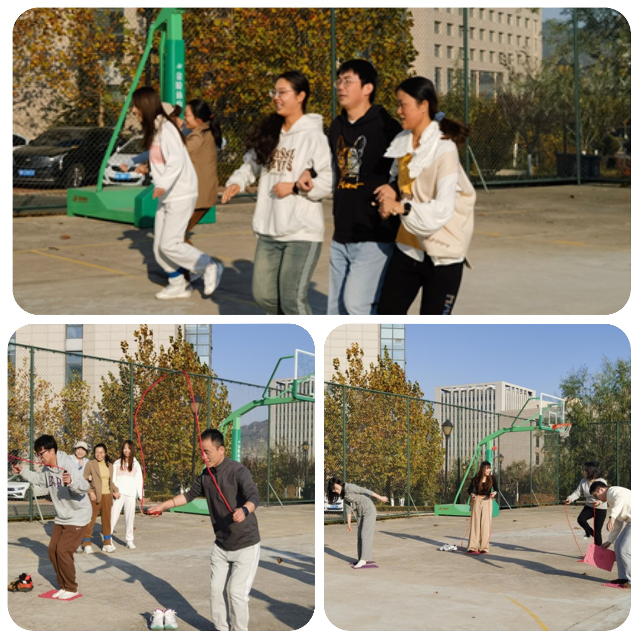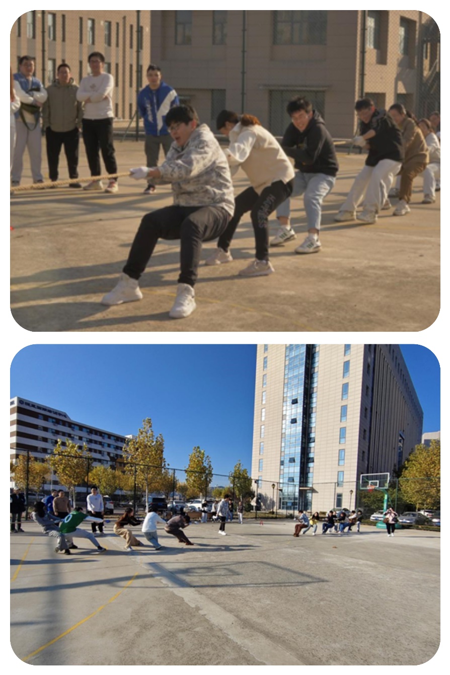 首先进行的是拔河对抗赛。比赛开始,选手们都摆好了最有利的姿势,抡起袖子、绷紧身子、蓄势待发。比赛中,队员表现出了顽强拼搏的精神。随后进行的是趣味接力赛,包括三人四组、指压板跳绳和摸石头过河。