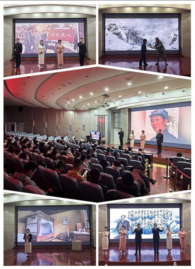 报告会邀请了甘肃高台干部学院6名老师作了题为《品读主席诗词 汲取奋进力量》的情景党课,党课以毛泽东诗词为创作主线,综合运用背景讲述、情景表演、诗词诵读、旁白解说等形式,结合历史背景和感人革命故事,分为“道路的力量”“信仰的力量”“真情的力量”“人民的力量”四个篇章,用诗词话党史,生动再现中国共产党领导全国各族人民救亡图存和励精图治的价值取向与使命担当,带领在场研究生重温峥嵘岁月,赓续中国共产党人精神血脉。