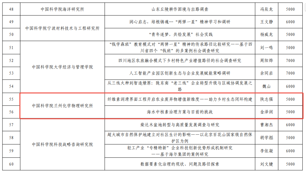 兰州化物所2名博士获中国科学院大学2025年度社会调查活动项目资助
