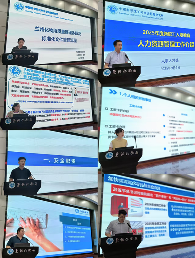 8月30日至9月2日,中国科学院兰州化学物理研究所举办2025年度新入所职工和研究生教育培训,160余人参加培训。兰州化物所党委书记王齐华,所长、党委副书记周峰,副所长张俊彦、石峰,纪委书记张景光,所务委员王道爱、崔新江出席培训会。石峰主持培训会开幕式。