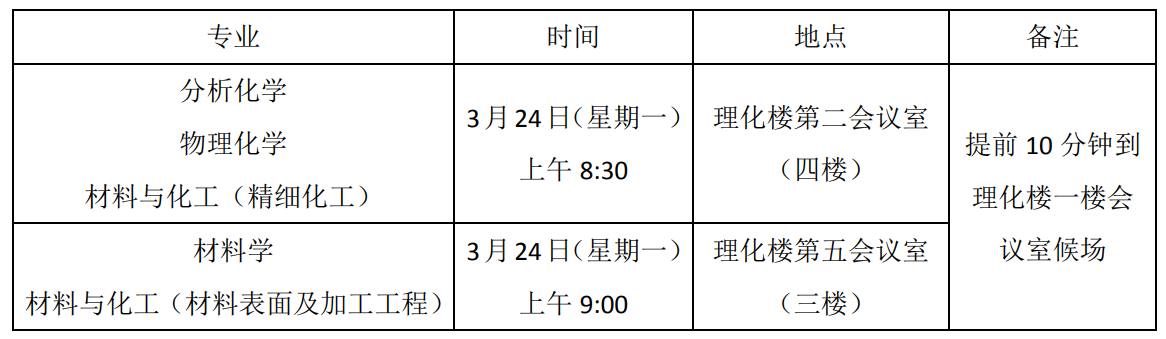 中国科学院兰州化学物理研究所定于2025年3月24日对进入复试的考生进行复试(具体复试名单见附件)。