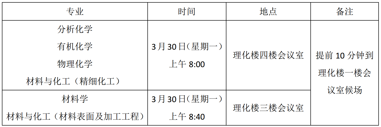中国科学院兰州化学物理研究所定于2026年3月30日对进入复试的考生进行复试(具体复试名单见附件)。