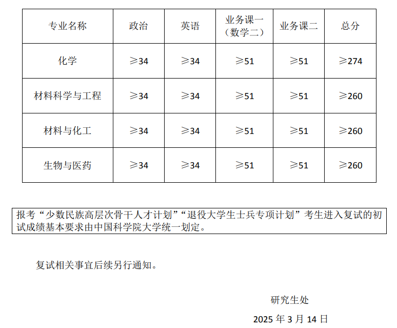 兰州化物所2025年硕士复试分数线