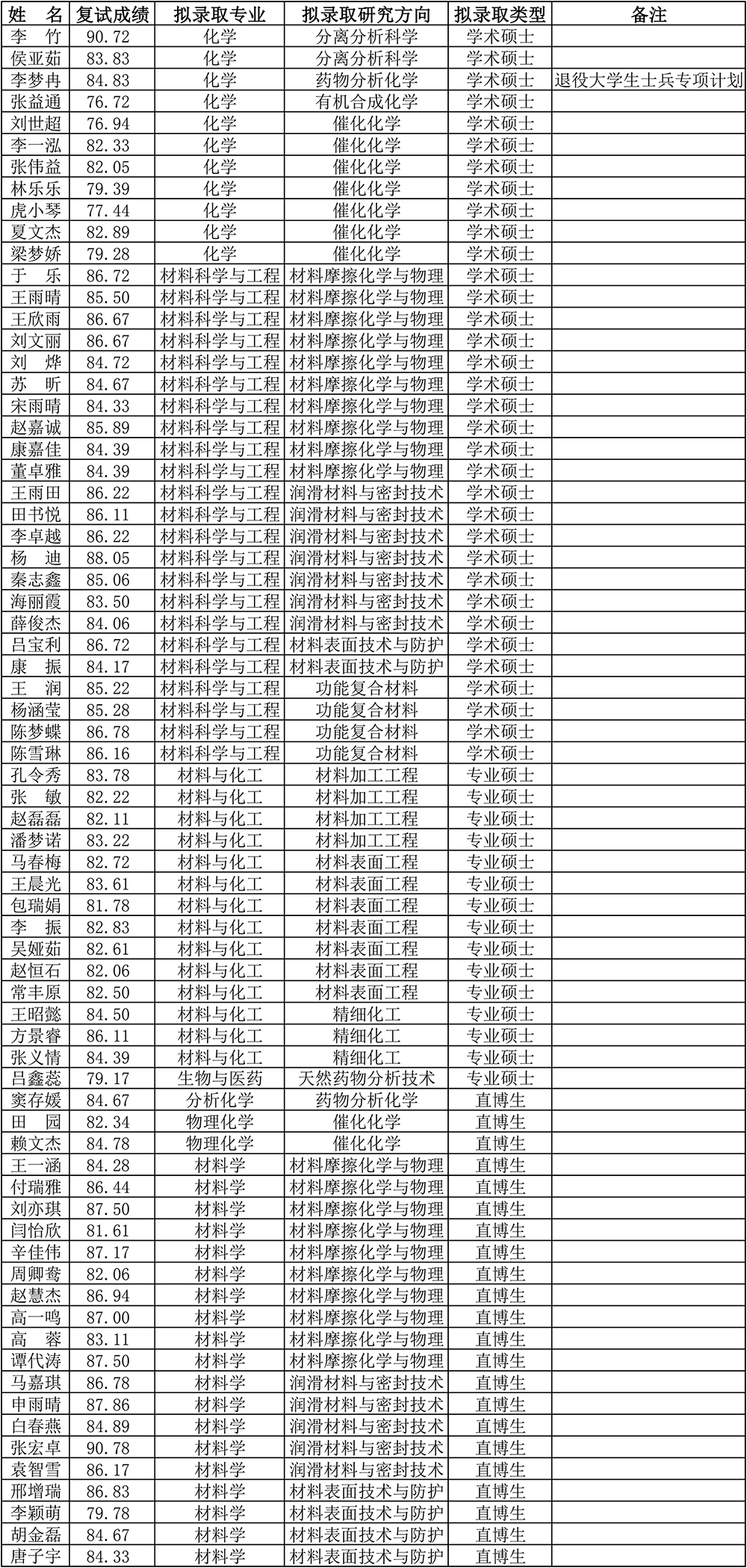 兰州化物所拟录取2026级推荐免试研究生名单公示