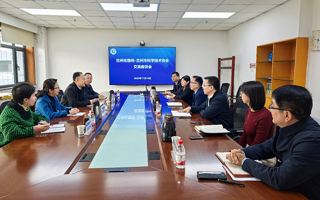 11月14日,兰州市科学技术协会党组书记、副主席冯治良一行4人到中国科学院兰州化学物理研究所调研交流。兰州化物所党委书记王齐华,党委委员、所务委员张永胜及相关管理部门负责人参加座谈。