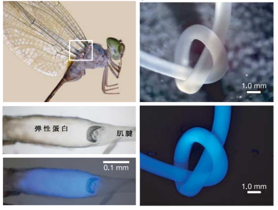 蜻蜓翅膀肌腱中弹性蛋白的荧光显微镜拍摄