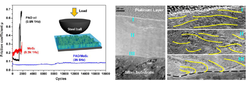 图1.大气环境中固-液复合润滑状态下二硫化钼的摩擦学行为