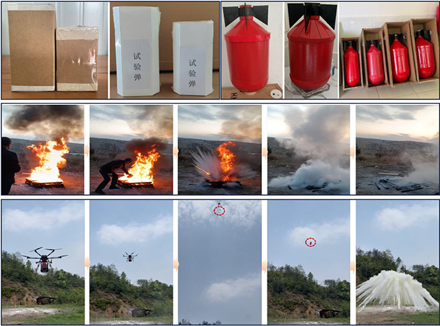 手投掷式灭火宝和机载灭火宝灭火材料抛洒灭火演练
