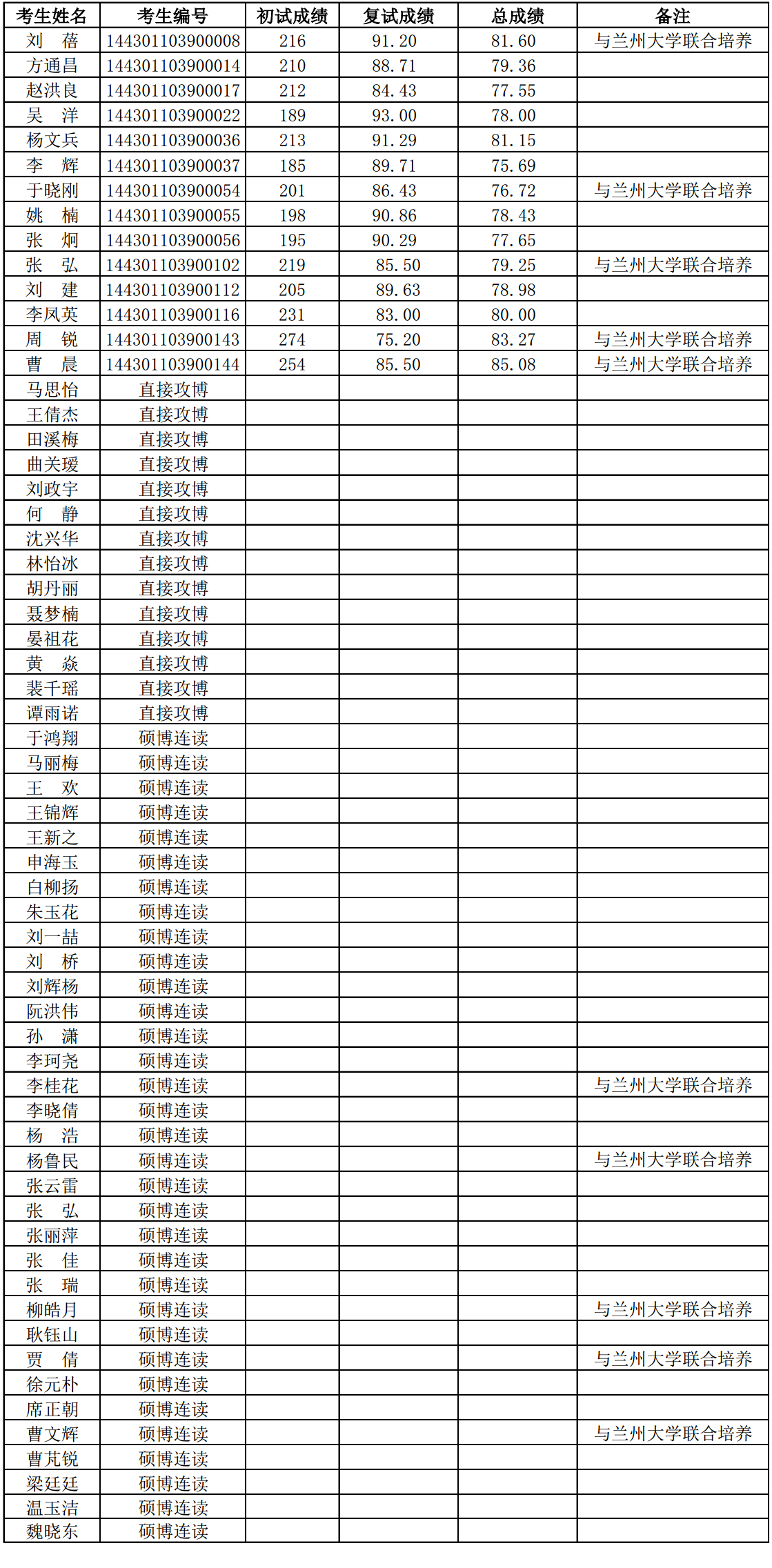 研究所拟录取2021级博士研究生共61名(含与兰州大学联合培养研究生10名),现将名单公示如下: